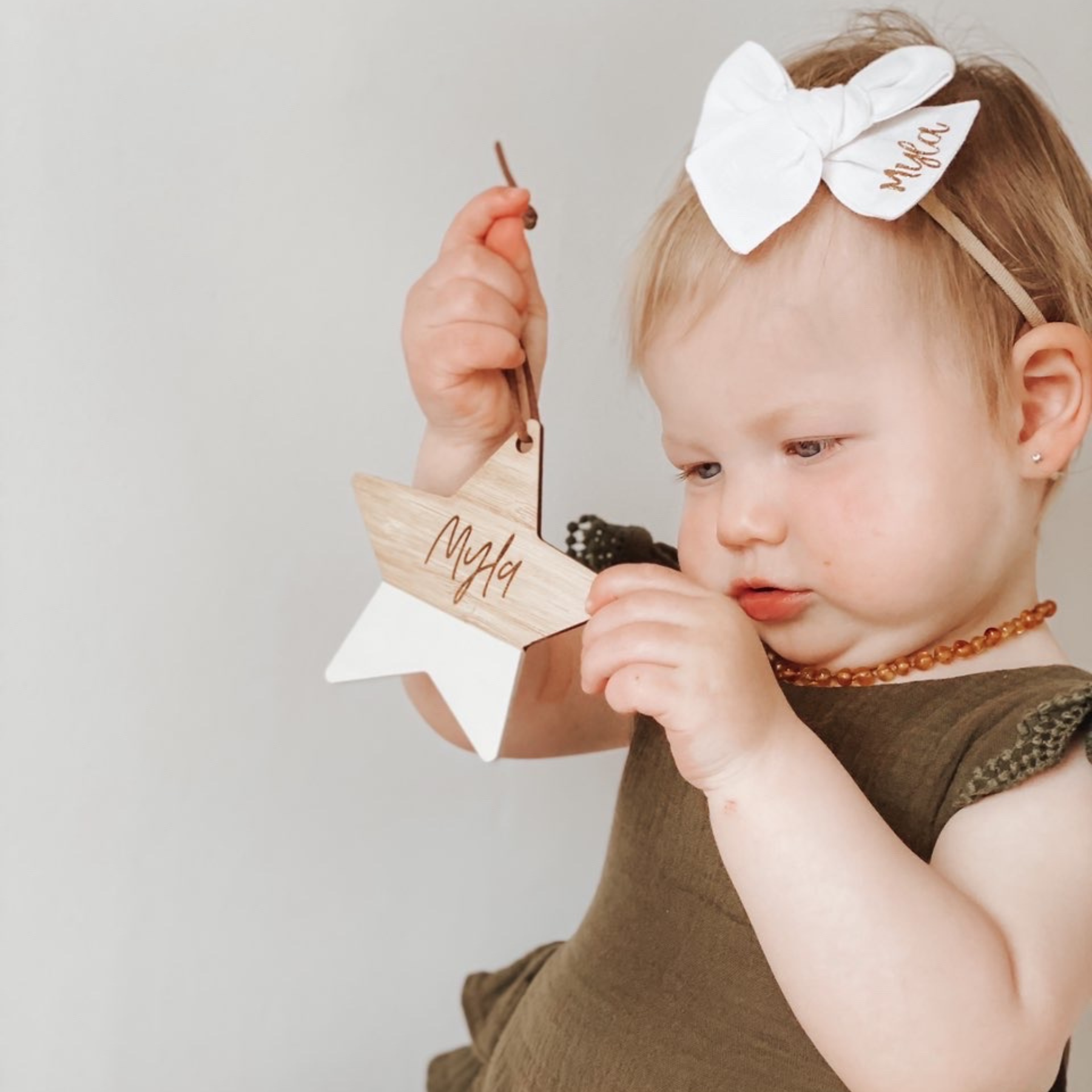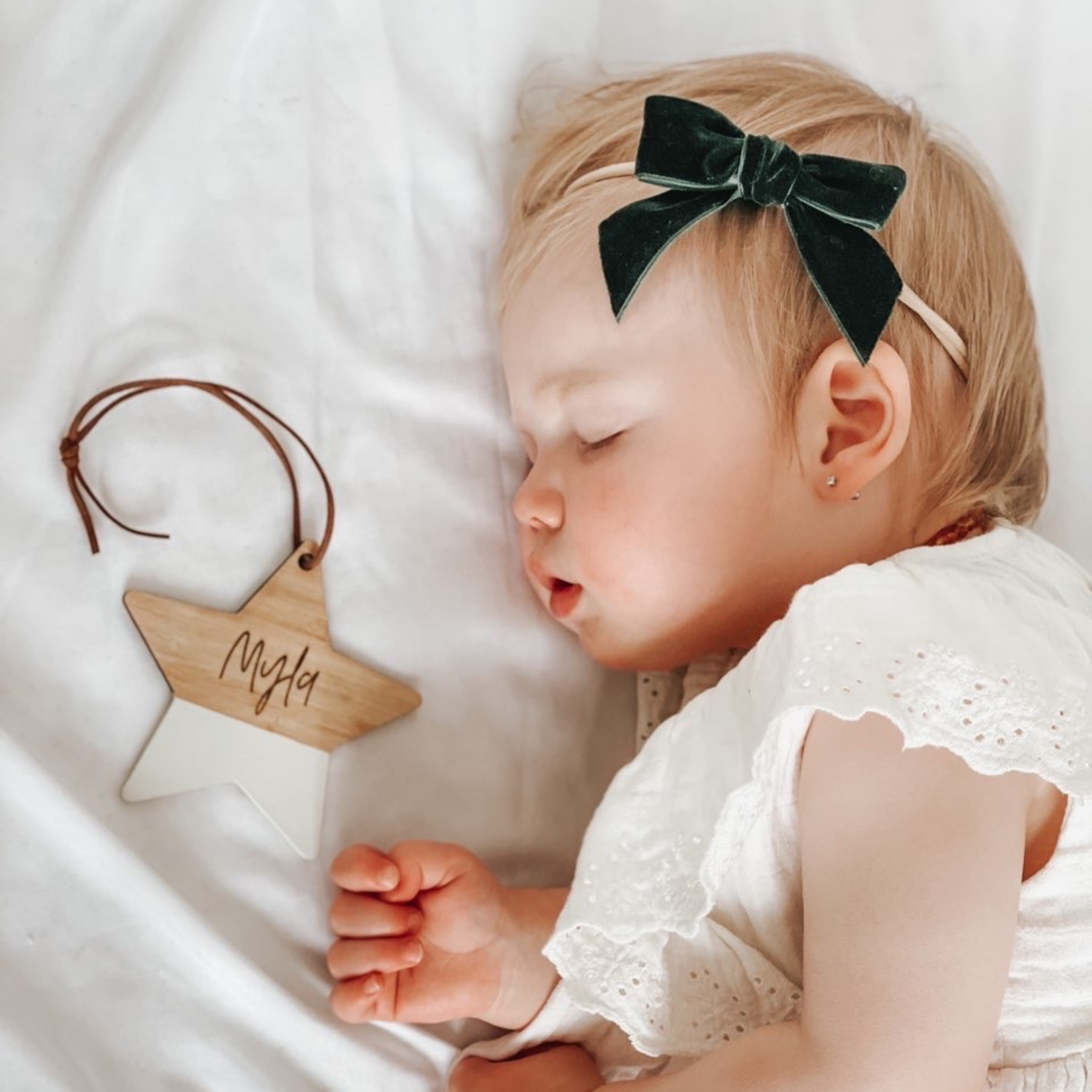 Half painted off white wooden star measuring 9cm